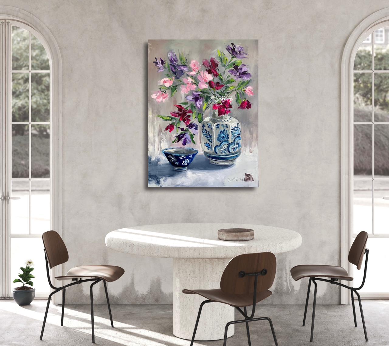 Her themes vary between birds, still-lifes, her love for delft and birds often featuring somewhere in her